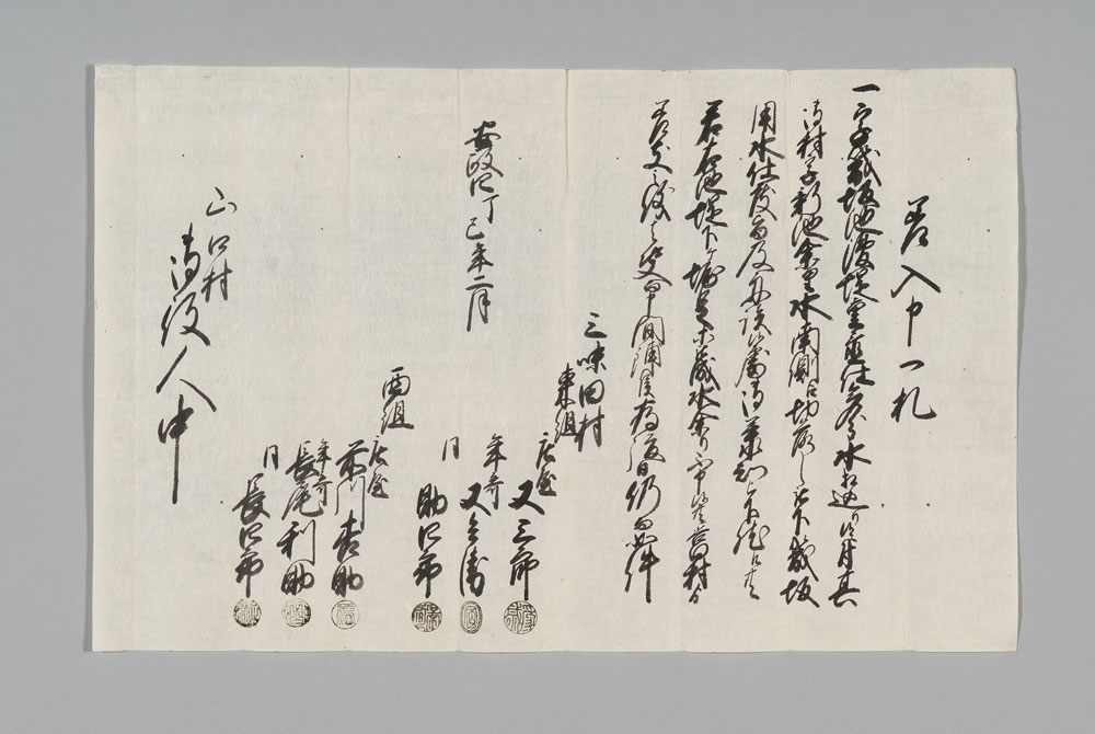本展では、日本の転換期である幕末・明治の暮らしを大和を中心に、生活道具や文書を通して紹介いたします。明治20年代には地方の信者がこの地に数多く移り住むようになり、これが宗教都市天理へと発展する出発点となりました。今回は教祖140年祭にあたり、年祭活動関連資料も併せて展示して、その伸長も回顧いたします。