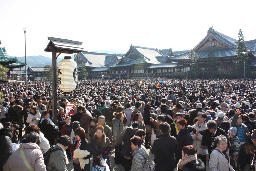 26日早朝は厳しい寒さでしたが、晴天に恵まれ、天理教の聖地である、天理教教会本部「おぢば」周辺は、国内外からの参拝者で賑わい、人、人、人でございました。神殿周辺の雰囲気を写真でお伝えしましょう。